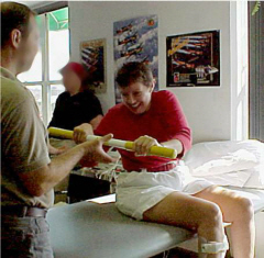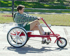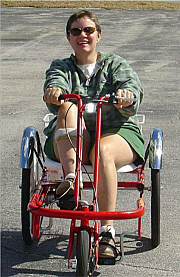 March 2005 - Riding new bike, during radiation. VERY weak.Husband had to lift me with a gait belt and strap BOTH feet to the pedals and give frequent pushes. (I had been going everywhere I wanted beforehand.)