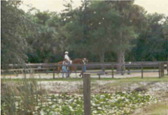 Hypotherapy - in a durage circle with 4 people helping--2 holding legs, 2