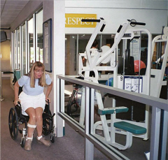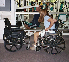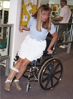 reaching second (borrowed) chair. (Still can't walk backward or use right hand